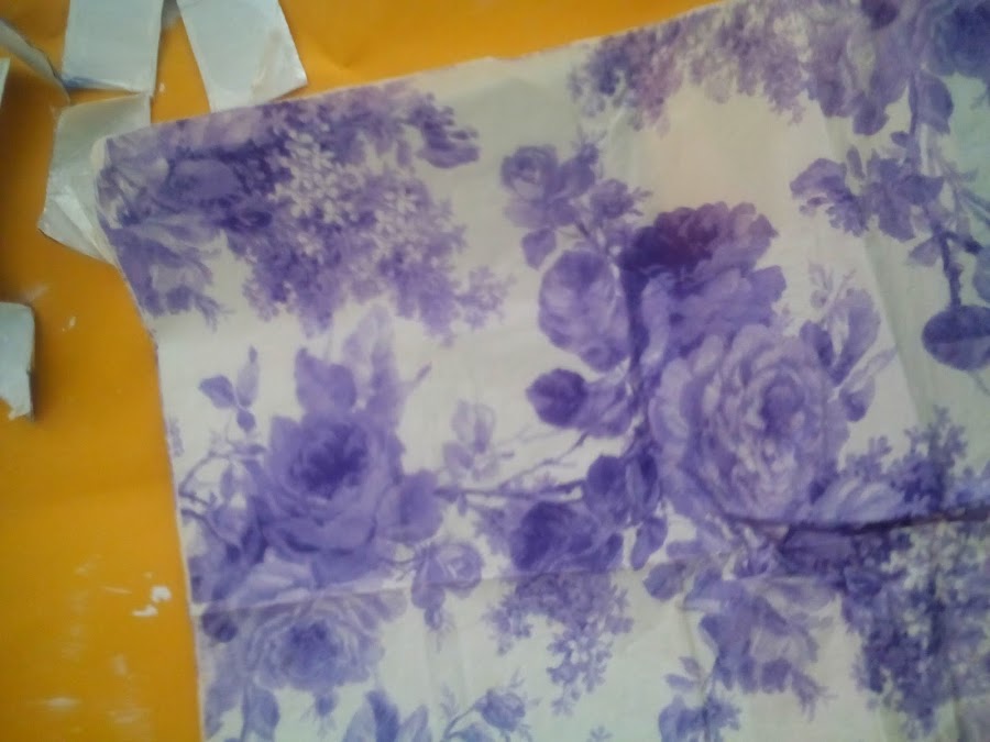 Sobre el cartón volteado coloque la servilleta y poco a poco la fui pegando con la cola blanca diluida en agua.
