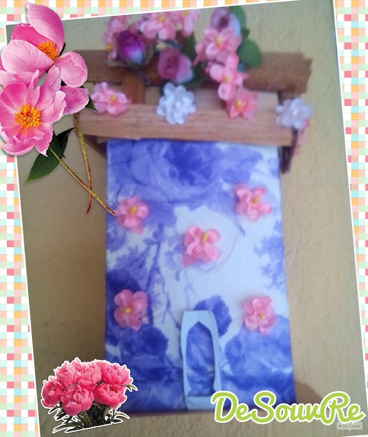 En la cara frontal también pegue florecillas salteadas, y un detallito, con la tapita del tetrabrick hice lo que simularía la puerta