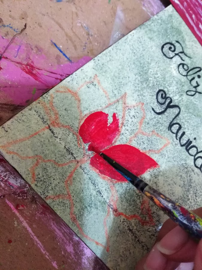 Y ya aquí viene la parte divertida :D pintar las flores de Pascua, con sus pétalos rojos y hojas verdes alrededor :D!!!