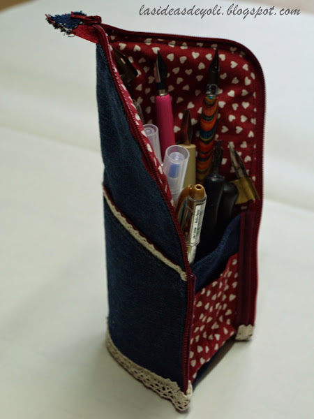 Ya sabéis que me encanta recuperar, reciclar y aprovechando los vaqueros y telas de ropa que ya no uso, que tengo por casa y los que me dan, he hecho este llavero tan chulo y un estuche para mis plumas y material de caligrafía.