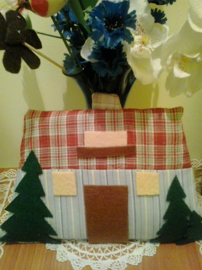 Es mucho más resultona en "persona" pero bueno os podéis hacer una idea. El tejado es del pijama y las paredes de una camisa de mi primo, los árboles, puerta y ventanas de fieltro (no he pensado mucho).