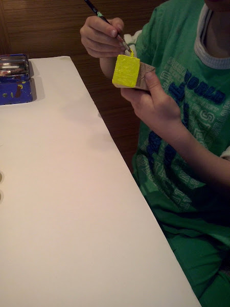 Hoy os presentamos un post que ya publicamos, el de las casitas de madera, si lo queréis ver o recordar, lo podéis ver aquí, pero con una versión, que yo creo que ha mejorado la nuestra. Se nos ocurrió la idea de enviarles dos casitas de madera a Laura, una amiga nuestra, y a su hijo Guille................al que le gustan mucho las manualidades, por lo que nos contó un pajarito, bueno mejor dicho un dinosaurio volador ;-).