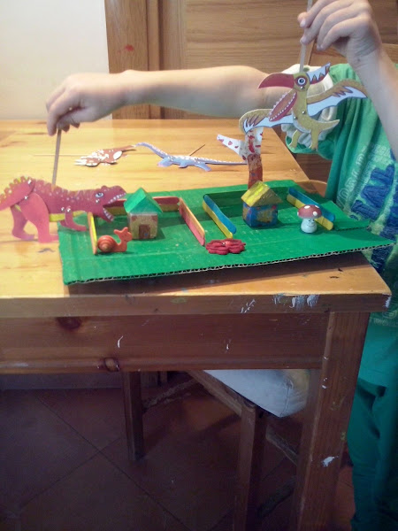 ¿Qué os ha parecido?. A nosotros nos ha encantado la experiencia..........quién sabe!!!...........quizás les propongamos nuevos retos a esta pareja, que tiene un gran potencial con las manualidades...............y muchísima imaginación y creatividad. Lo de las casitas con los dinosaurios nos ha parecido genial.............el resultado final nos ha dejado sin palabras ;-)). Muchísimas gracias chicos!!