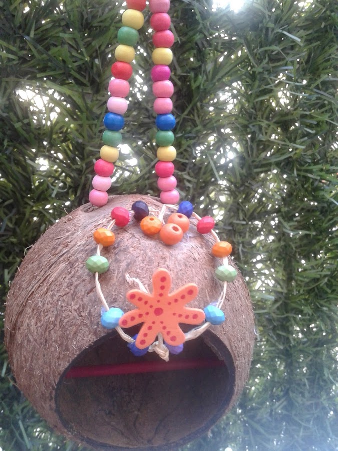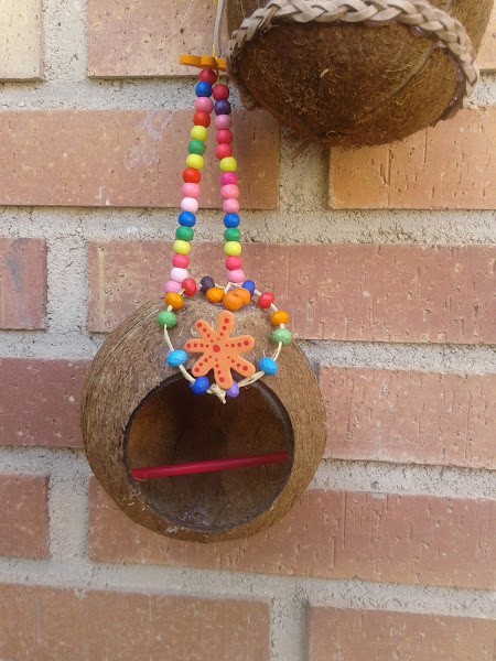 Esta es la casita de los pajaritos peques, les puse dentro un columpio para que jueguen y traté de hacerla divertida y hipie.