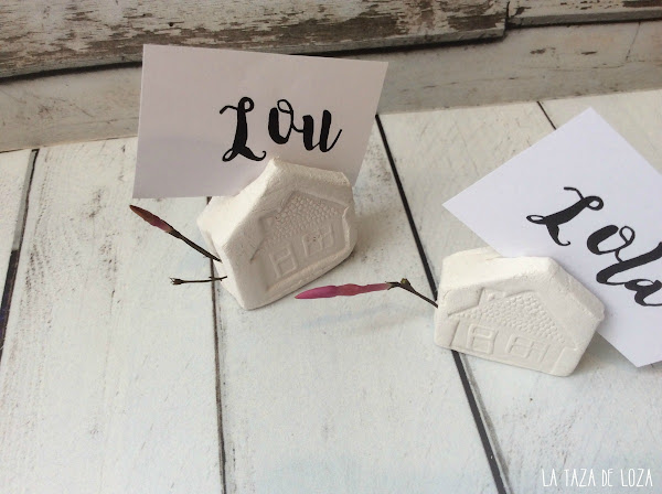 Os muestro solo dos imágenes para que veáis lo monas que quedan, en el post de "Una Pizca de Hogar" podréis ver más imágenes con detalle. Como digo en el post, no hace falta saber el asiento de cada uno, pero estos pequeños detalles hacen que cada cosa que organizamos quede perfecta y con detalles únicos, pues estos portatarjetas si no los hacéis en casa no los encontraréis en ninguna parte.