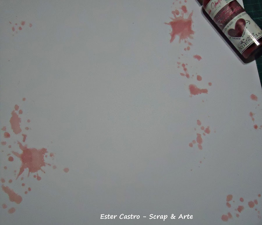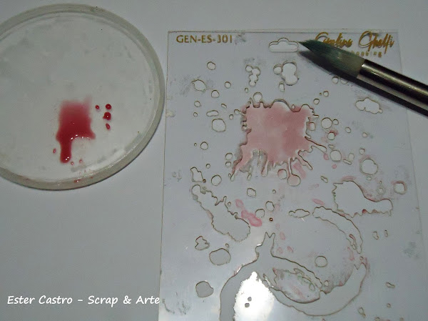 sobre la lámina blanca que utilice como base de mi proyecto le realice unas manchas con el esténcil pintadas con Bruma de Color Rojo