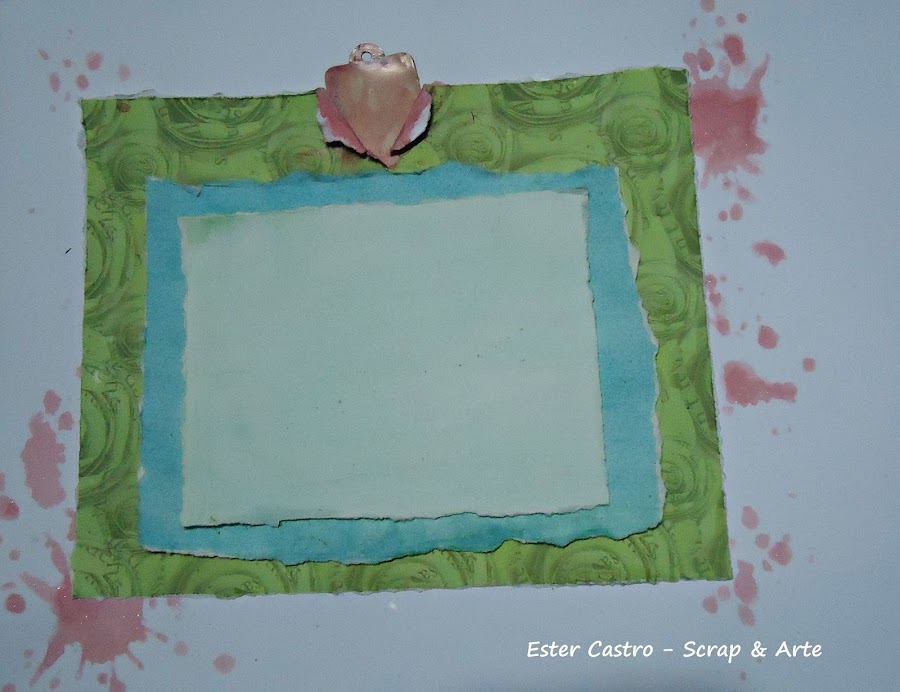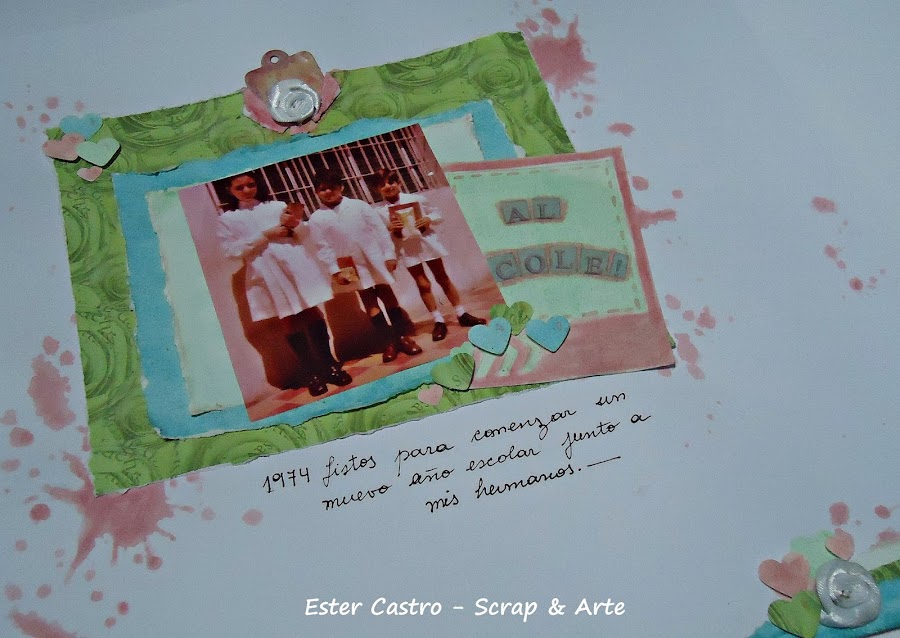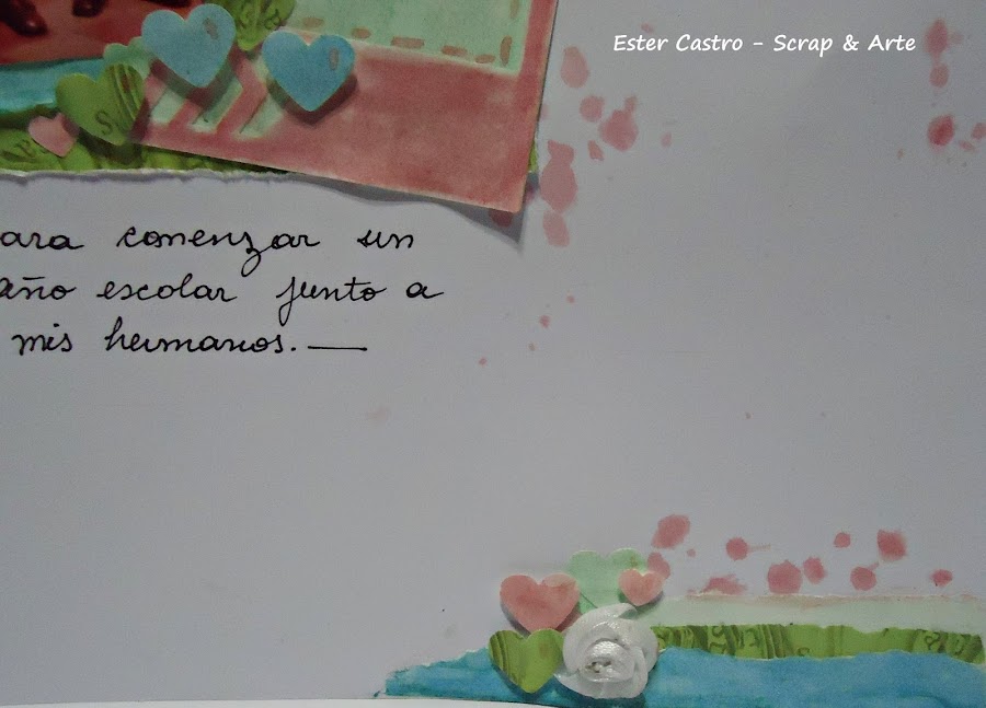 y en la parte inferior di mas detalles con recortes a mano de papeles, corazones y flor.