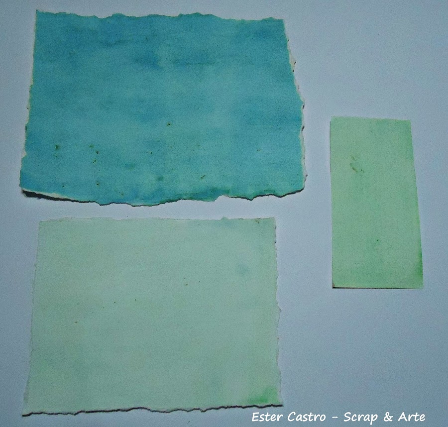 El papel Grande lo pinte mezclando Bruma Celeste y Bruma Verde Claro tratando de llegar al color de la paleta pedido, el papel Mediano lo pinte con Bruma Verde Claro dando una sola mano y retirando el exceso de bruma para que quede bien claro y el papel Pequeño lo pinte también con Bruma Verde Claro dando tres manos dejando secar entre mano y mano para que quedara un poco mas oscuro.