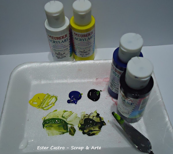 y también agregué Negro para armar un color verde más oscuro y blanco para iluminar.