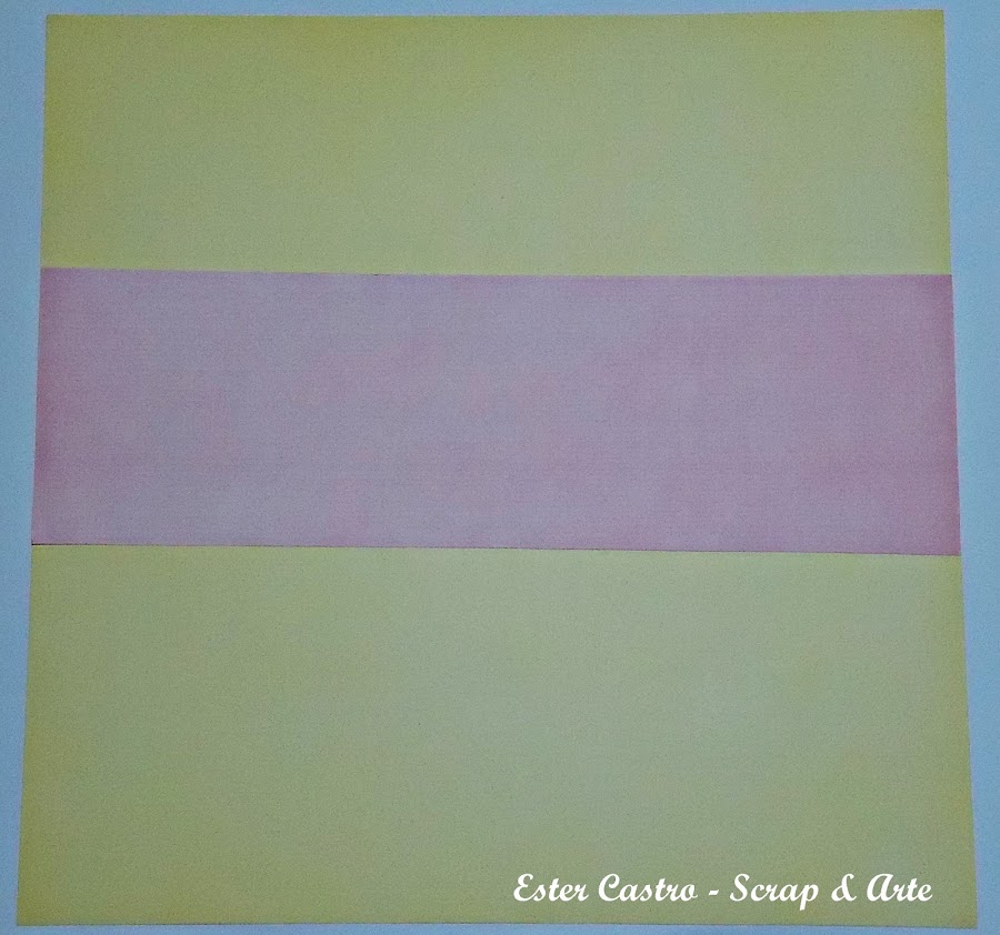 Sobre la lámina de color amarilla que usare como base de mi Layout pegue un trozo de lámina rosa un poco más arriba del medio.