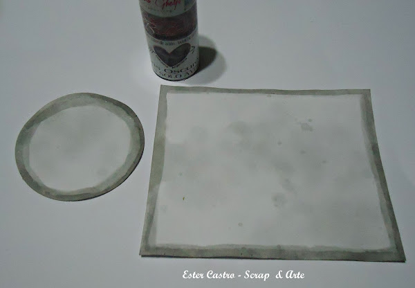 Sobre una lámina blanca recorte un rectángulo y un círculo para hacer los Mat (alfombritas) para las fotos y le pinte los bordes con bruma gris oscuro para resaltar.