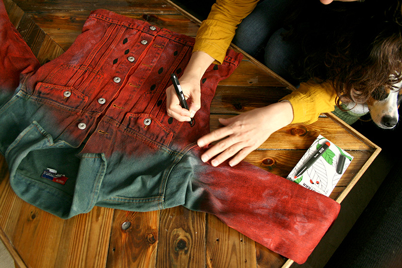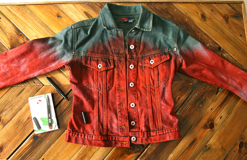 Aquí veis la cazadora y los tintes que he utilizado