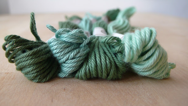 He escogido hilo de tapicería en distintas tonalidades de verde, ya que es uno de mis colores favoritos. y además combina con todo.