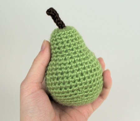 Sólo son unas directrices genéricas, pero os dejo este patrón gratuito de PlanetJune. De las peras que he encontrado, son las más realistas y bonitas. Haz click aquí o en la imagen para acceder a él. Además de ofrecerlo de forma gratuita, esta chica acepta donaciones por sus patrones. A cambio os envía el patrón en pdf, que es más cómodo y organizado que leerlo en un blog.
