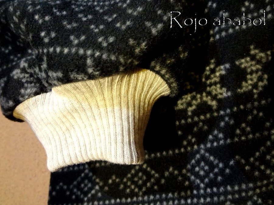 Pero la verdad que la cosa se complicó, el verano no se iba, bien entrados en octubre aún hacía mucho calor y no os hacéis idea la pereza que me daba ponerme a coser polar... buf!! Total que empezaron a surgir costuras de aquí y allá y al final casi no lo termino... Así que la pasada semana me propuse ir terminando con las costuras pendientes y en el primer lugar de mi lista estaba el abrigo de porteo :)