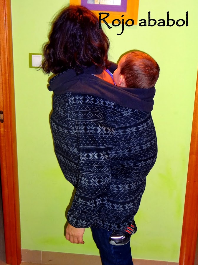 Tengo que deciros que me encanta mi abrigo, el patrón es muy bueno y la verdad que nos ofrece varias posibilidades, incluso la de no porteo. Yo ya lo hago a la espalda y además son dos añitos casi, por eso no puse la goma de la vaina trasera.
