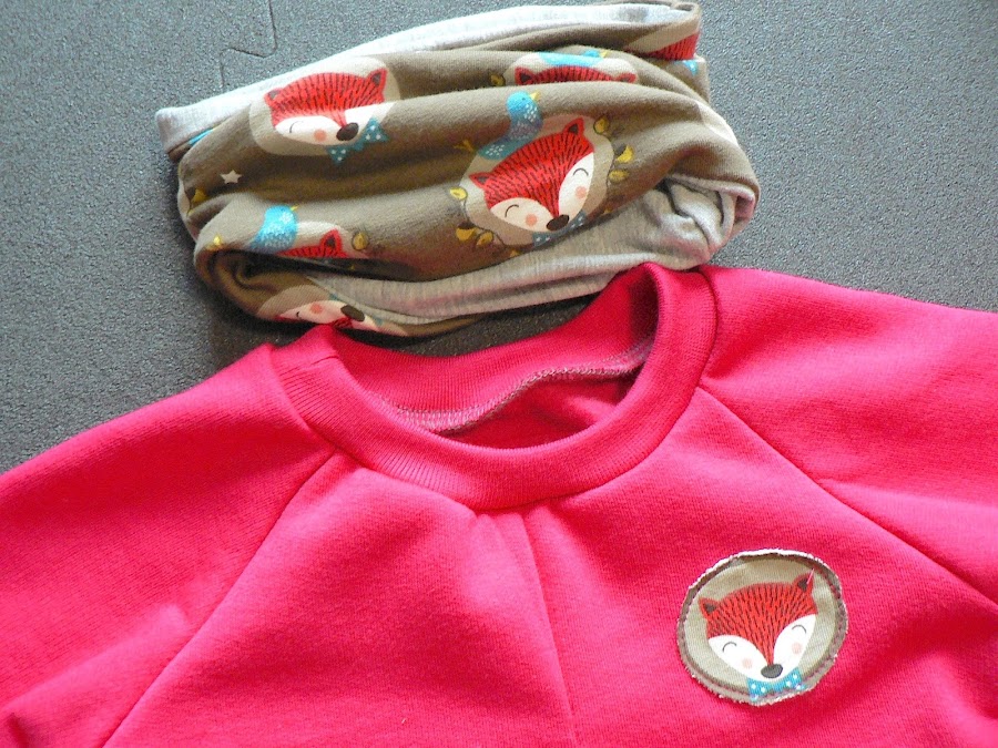 Me vine un poco arriba y le hice el conjunto completo. Complementé el vestido con unos leggings básicos y un cuello calentito. Me parece un conjunto genial para ir al cole ahora que acaba de empezar.