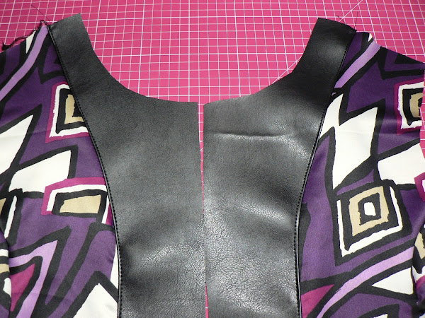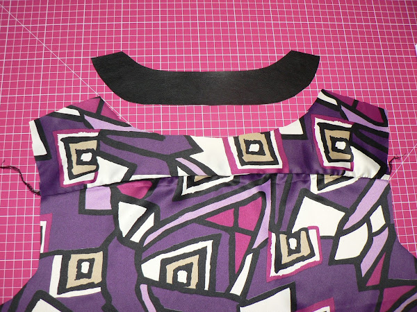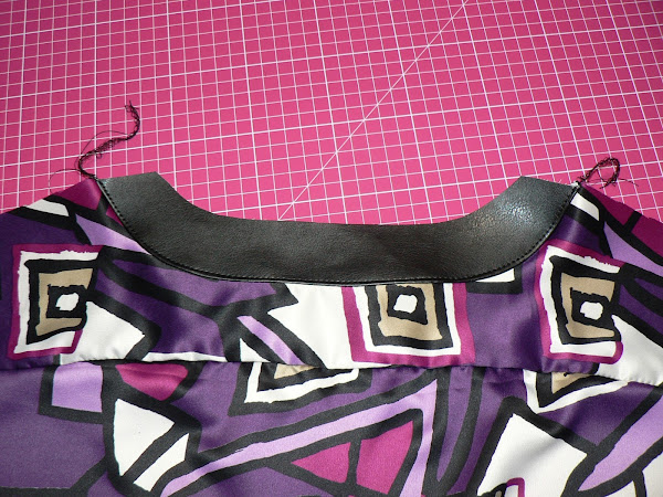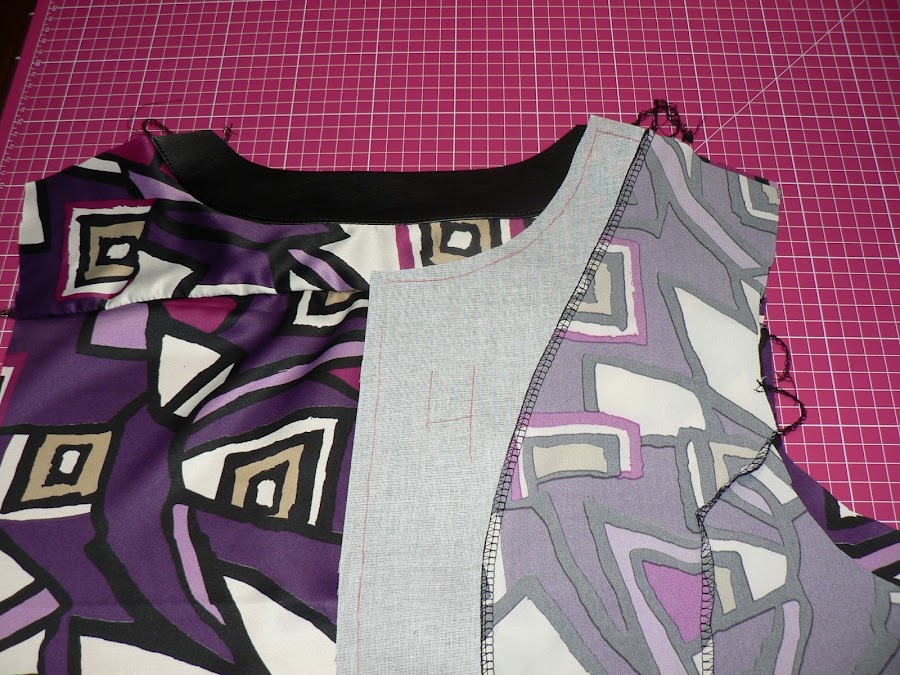 Y después ponemos la vista igual que en el delantero, primero derecho con derecho, luego aplanamos el margen de costura hacia la vista y pespunte recto cerca del borde.