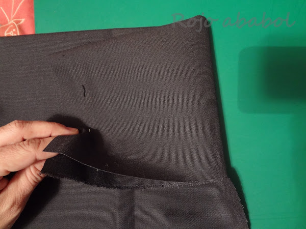 Sujetamos bien todo el contorno, ajustando las dos partes del bolsillo, para colocar luego el bies.