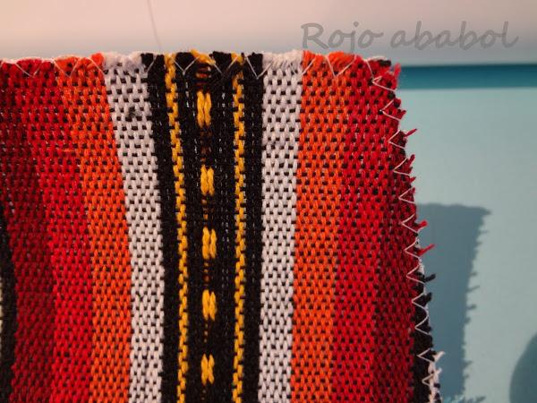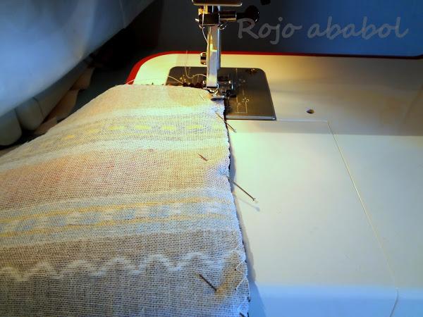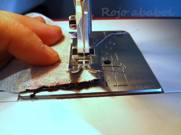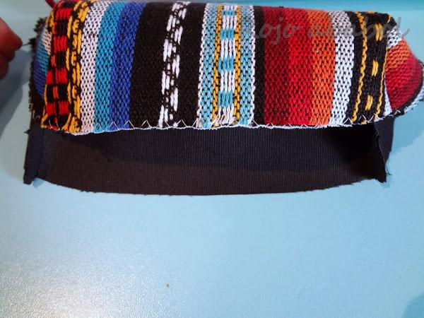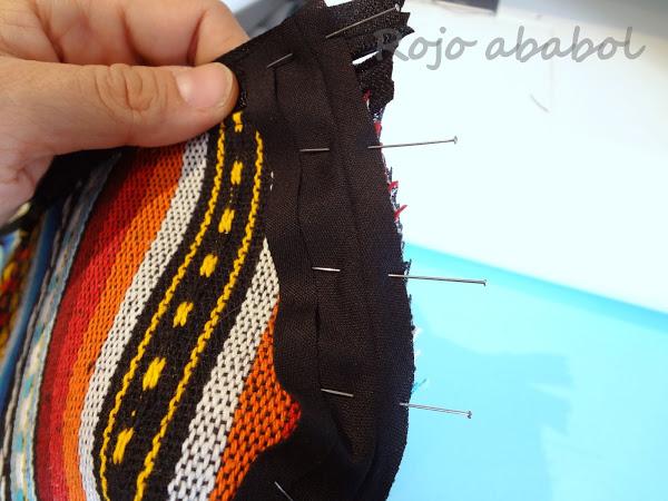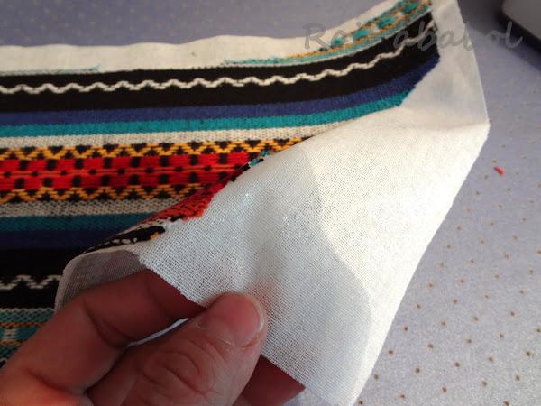 Si habéis elegido una tela difícil de coser como puede ser una de camiseta, o una alpujarreña como la que he usado yo aquí, sería conveniente transformarla en tela plana que no os complique la vida, tal que entretelando.