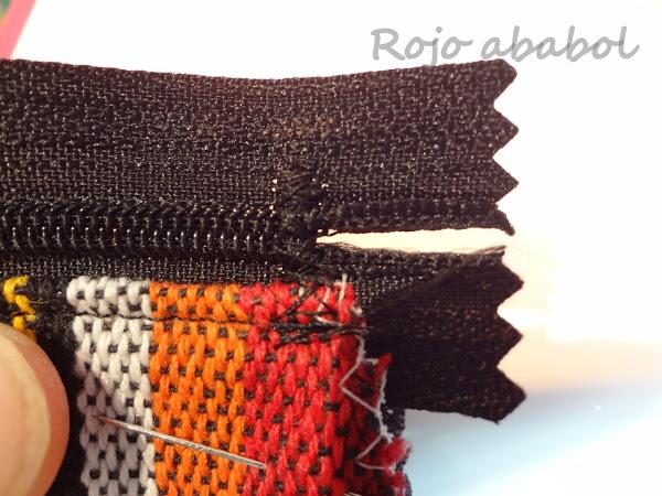 Si quitamos los ganchitos metálicos de la cremallera mucho mejor. Para asegurarla luego y que no se nos salga el carro, simplemente damos unas pasadas con zig zag