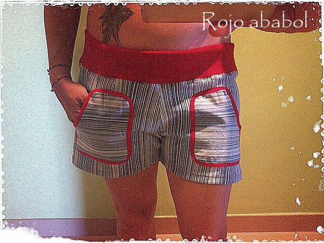 Vi la tela y enseguida imaginé unos shorts con el patrón del Cose Conmigo de Mi rincón de mariposas. Veía hasta los bolsillos de plastón con su bies alrededor... el color fue elección de última hora y me encanta!! Tienen un aire retro que me chifla!!