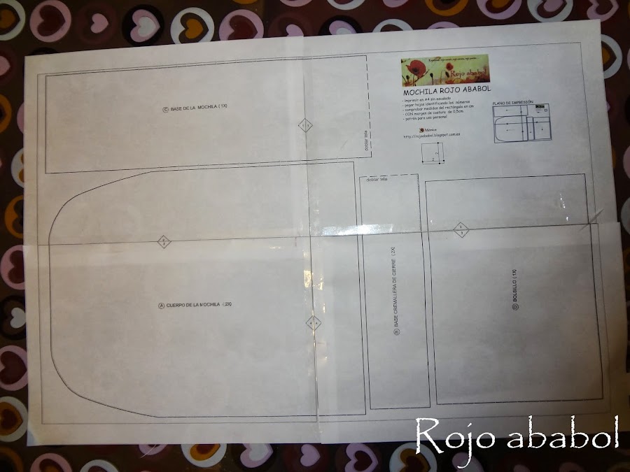 Bueno, pues vamos a por el trabajo de hoy. Vamos a imprimir el patrón, unirlo, recortarlo y pasarlo a la tela. Creo que es sencillo pero os voy a dar un repaso rápido.