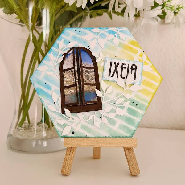 Este año 2021 estoy participando en el intercambio mensual de @ScrapyFoto, #colmenascrapyfoto la propuesta consiste en hacer cada mes la interpretación de una palabra sobre un soporte de medidas determinadas en forma de celdilla de colmena de abeja.