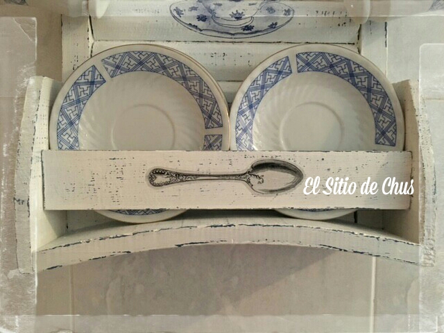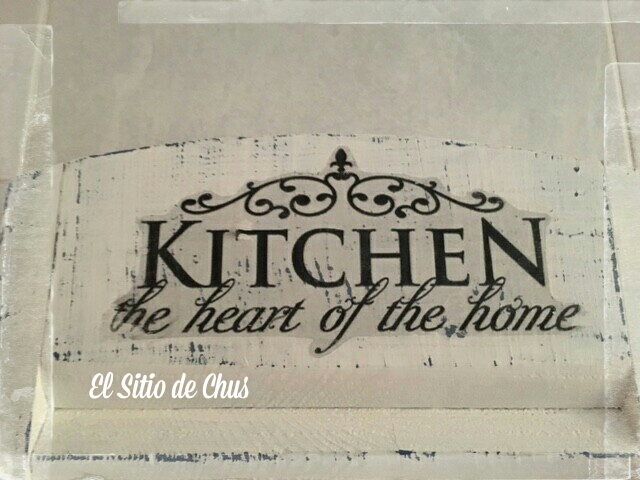 Para que hiciera la función de platero le tuve que añadir esta tablita a modo de travesaño para que sujetara los platos. La traté igual que la tabla y conseguí que no se notara que era un añadido. También apliqué un transfer, cómo me gusta esta técnica y que útil me resulta.