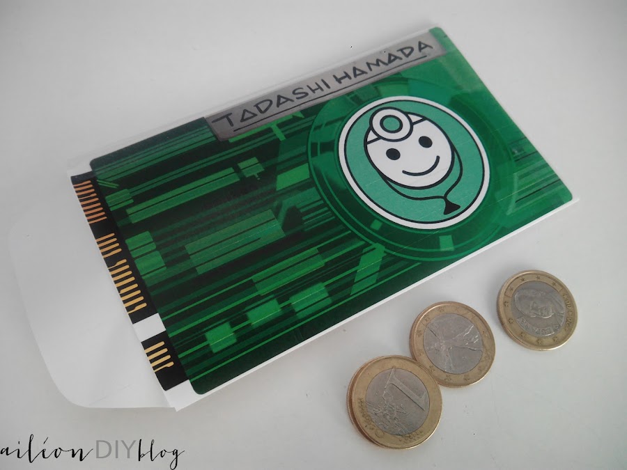 - Si quieres hacer sobres para las invitaciones, lo más fácil es imprimirte en papel adhesivo la tarjeta que diseñó Tadashi (la obtuve en pinterest), la pegas a un sobre blanco alargado y listo (pienso que este detalle es un poco friki de más, pero he de decir que a mi hijo le apasionó).