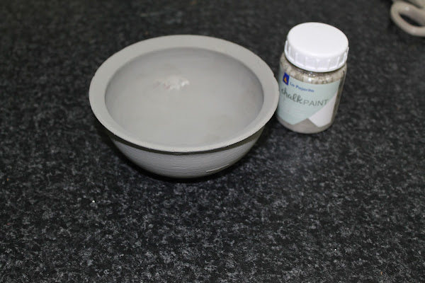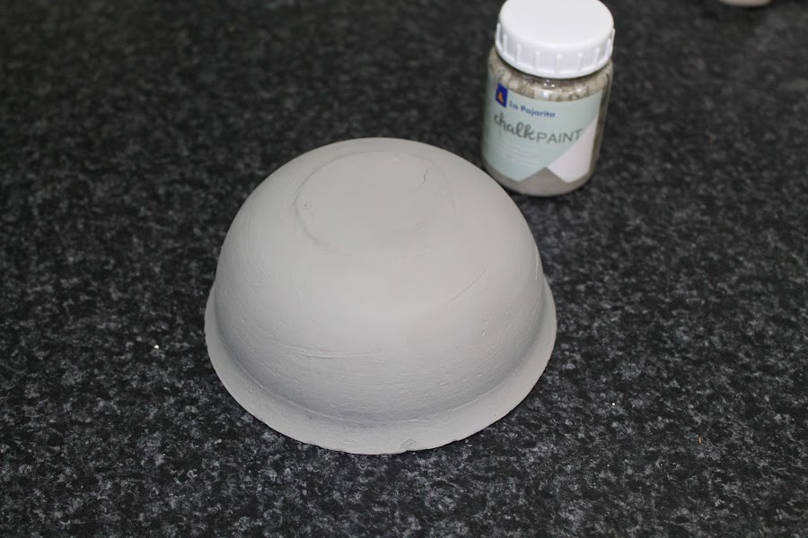 Este cuenco de barro es ideal para lo que quiero, lo pinto con pintura de pizarra en un tono verde grisáceo