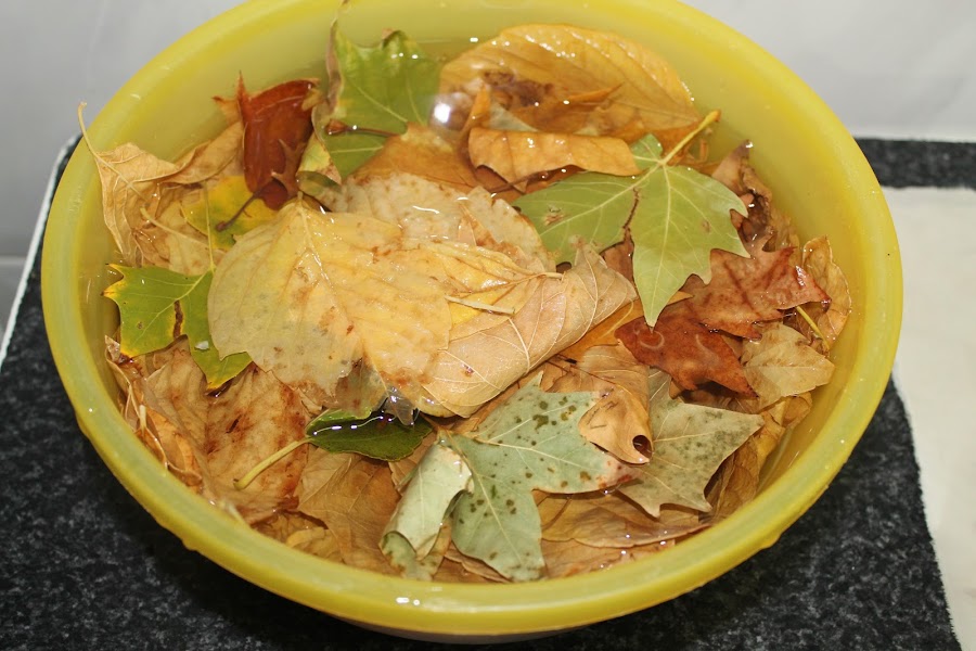 Las hojas como veis la he puesto en agua para limpiarlas de algún resto de tierra e hidratarlas un poco para que no se rompan