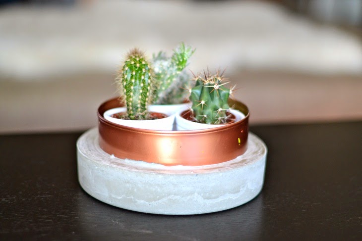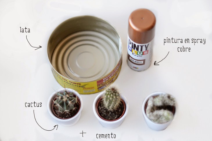 Pues en el post de hoy combino cemento con cobre, reciclando una lata ya de paso. Y lo que hago es un centro para mesa de centro con unos cactus, plantas que me tienen obsesionada últimamente!!