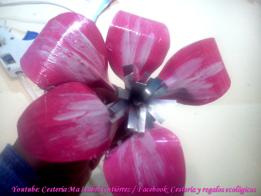 Como opción extra también podemos pegar un lazo blanco de listón por abajo de cada flor y listo !! muy sencillo de hacer, reciclando y con un resultado muy lindo!