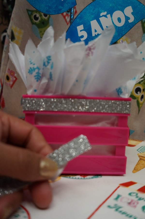 Le colocare este washi tape alrededor del huacal para que luzca más.