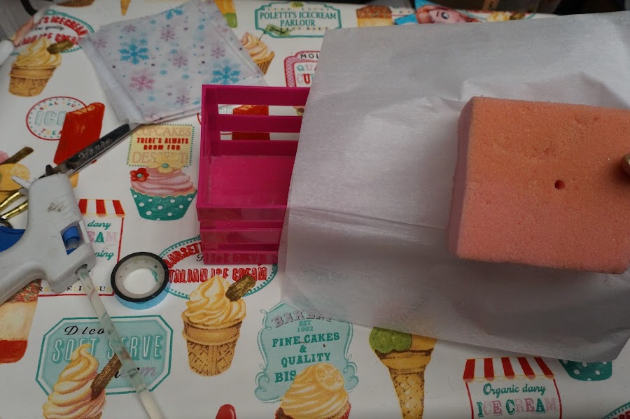 Ahora el foam lo forraremos con papel china