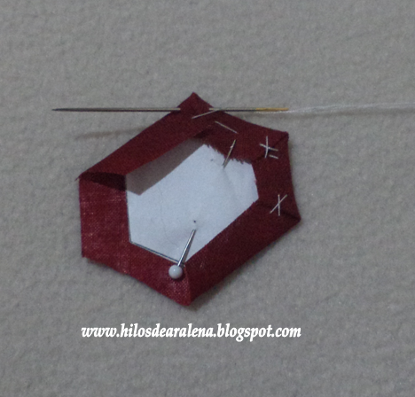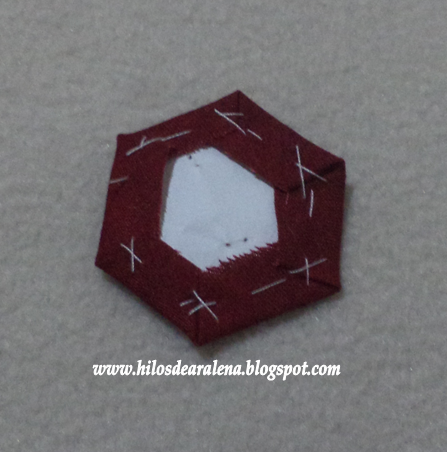 Con un hilván formamos cada uno alrededor del hexágono de papel.