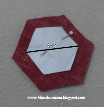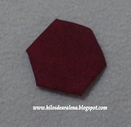 La tercera parte que va en el revés , prepare un hexágono con 3 cm de margen.