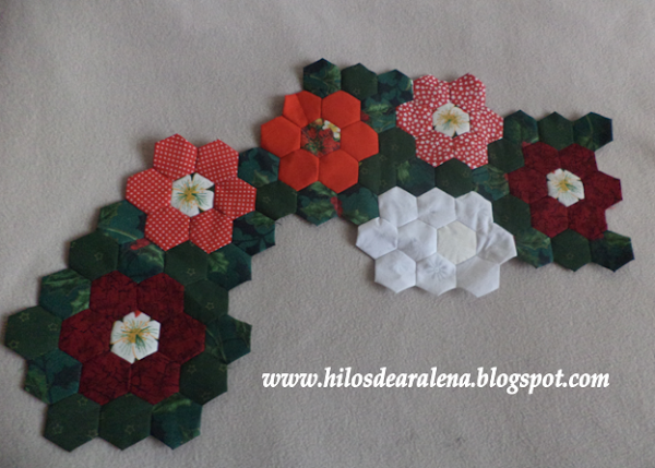 Para empezar , muuuuuuchos hexágonos de distintos colores para las flores , hojas y centro.