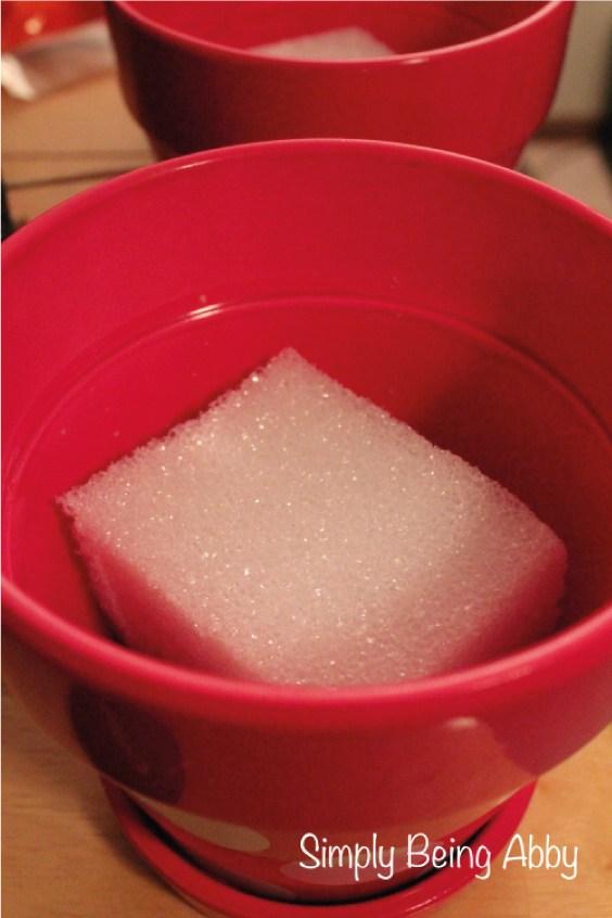 Colocar un trozo de telgopor en la maceta, tener en cuenta que entre bien ajustado para que sostenga bien la cabeza de Minnie.