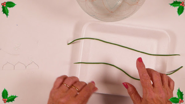Luego a los cordones con la brillantina los pego sobre las marcas realizadas en el recipiente