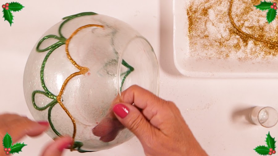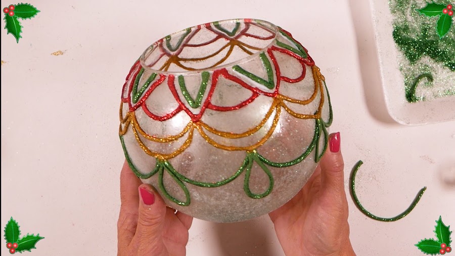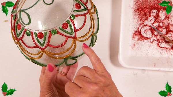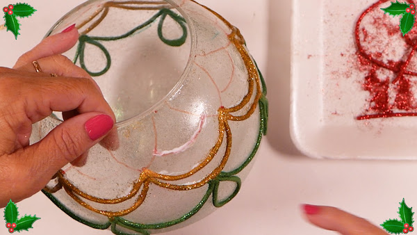 Se emplea como base un Objeto de Cristal que se adorna con Porcelana Fría y Brillantina