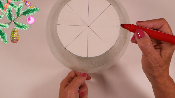 Para delinear el dibujo hacemos un círculo con divisiones que utilizaremos para marcar sobre el vidrio