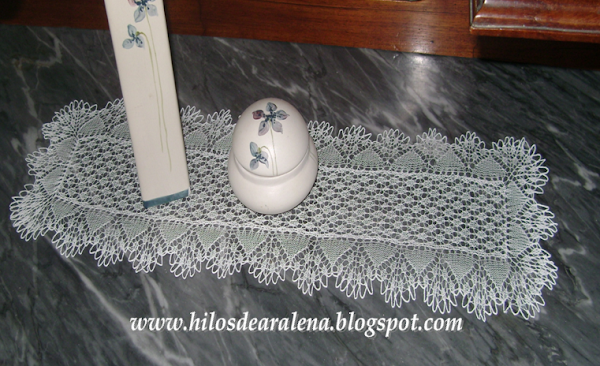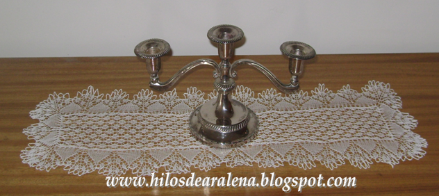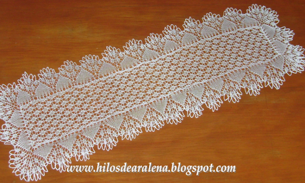 El tamaño final de mi trabajo es de 20 X 60 cm. Realizado con agujas n° 1,5 y con el ovillo que abajo ven, alcanza para 2 comodamente