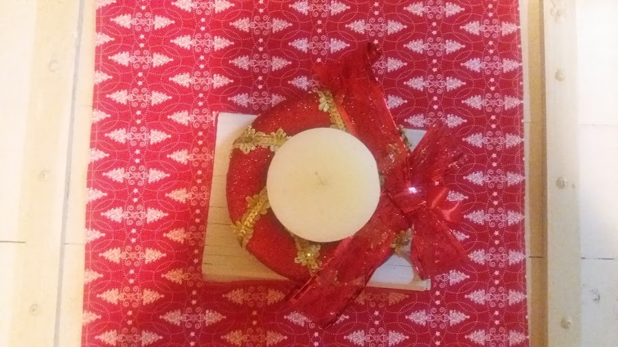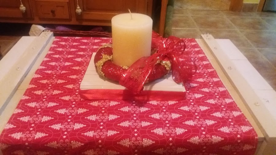 Me pidio que pusiera un mini mantelito que hice, con esta tela que compré el año pasado y que he usado para hacerle un regalito navideño a mi madre. Que os enseñare en Aprendiendo de Todo un Poco.