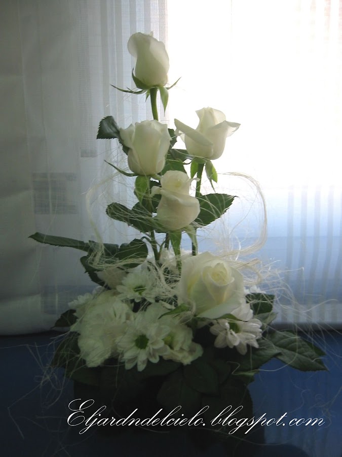 Al estilo campestre como se lleva ahora, con las flores haciendo grupos como si las acabases de recoger del campo. Les he puesto margaritas, Lisanthus y rosas blancas.