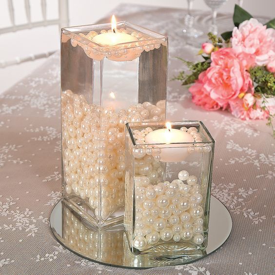 Y si quieres un toque aún más romántico, puedes utilizar estas perlas en el fondo de jarrón de cristal, lo rellenas de agua y decoras con unas velas. Ideal como centro de mesa express, muy rápido y fácil de hacer.