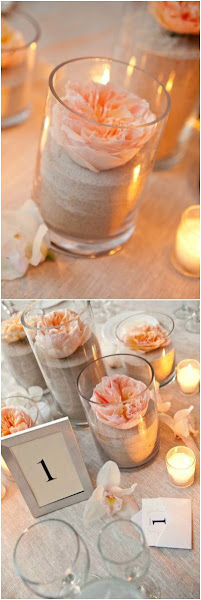 Y es que es así, muchas veces utilizamos en los centros de mesa agua para nuestras flores, pero no es siempre necesario ya que gracias a esta idea vemos que podemos dar un toque veraniego y original a nuestra mesa, con tan solo un bote con arena y nuestras flores preferidas.