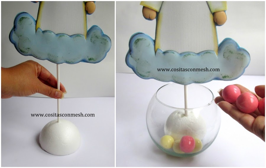 Acompáñame en esta nueva mannualidad, te contare cómo lo fui haciendo paso por paso, debido a que el diseño de la figura del angelito en foami es muy sencillo te prometo que no sera difícil de hacer. Estos centros de mesa para confirmación o bautizo los puedes acompañar con dulces o decorándolos con papel de china, los moldes los dejaré en un link para que los puedas imprimir, espero que te guste y te animes a hacerlo.