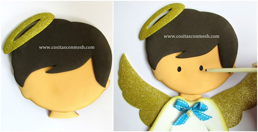 5.-Luego de pegar el cabello, pego la aureola.